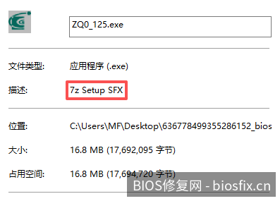 1、官网下载的BIOS文件为exe格式(7z打包)。