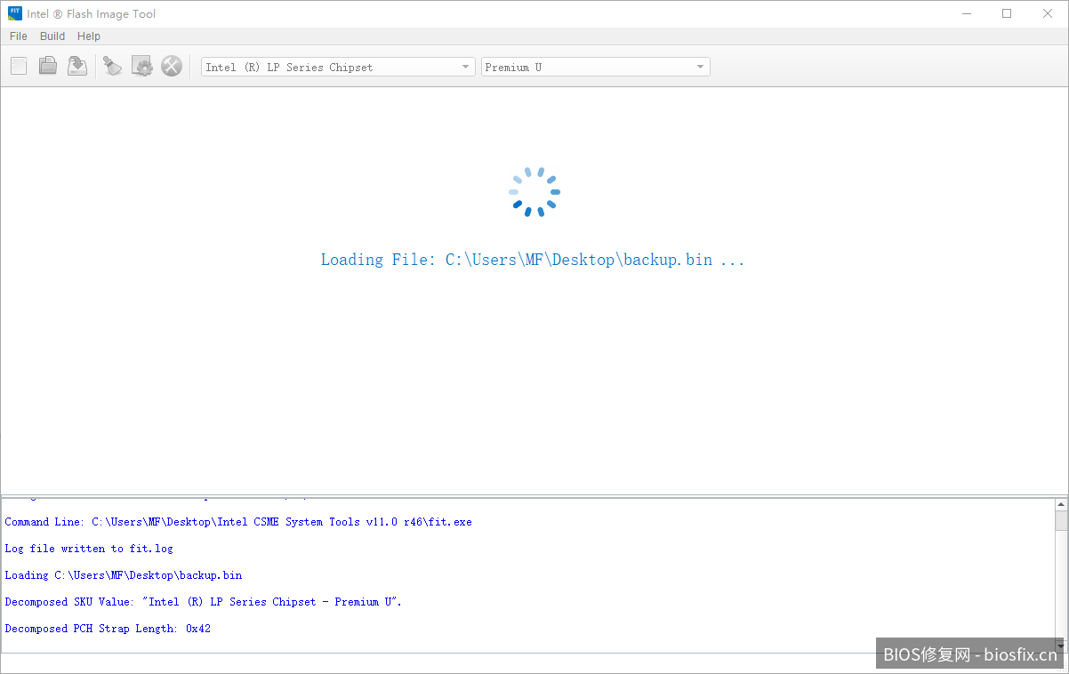 2、打开FIT,在工具栏选择File → Open打开或拖入需要清理的SPI BIOS文件。