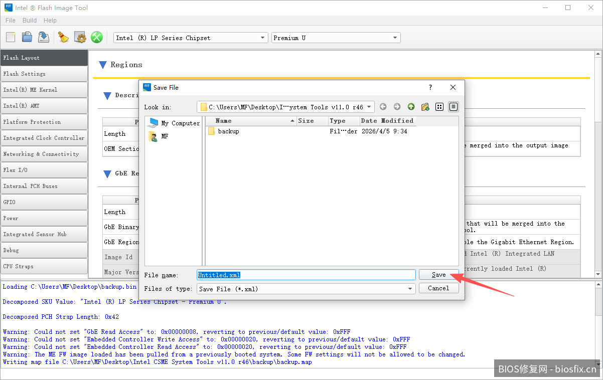 2、备份文件:修改BIOS有风险,操作前建议备份原始BIOS文件。